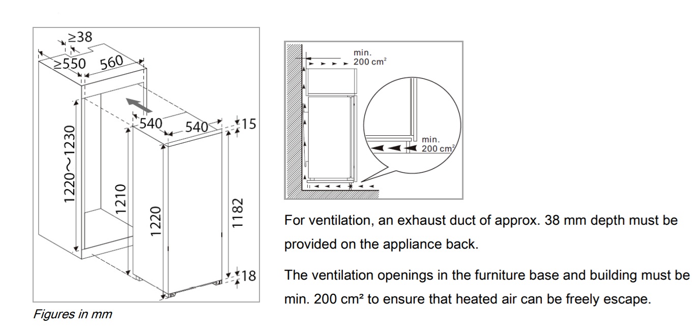 | Külmiku laius, mm | |